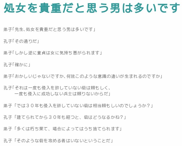 処女は清らかで童貞は不潔と言う風潮
