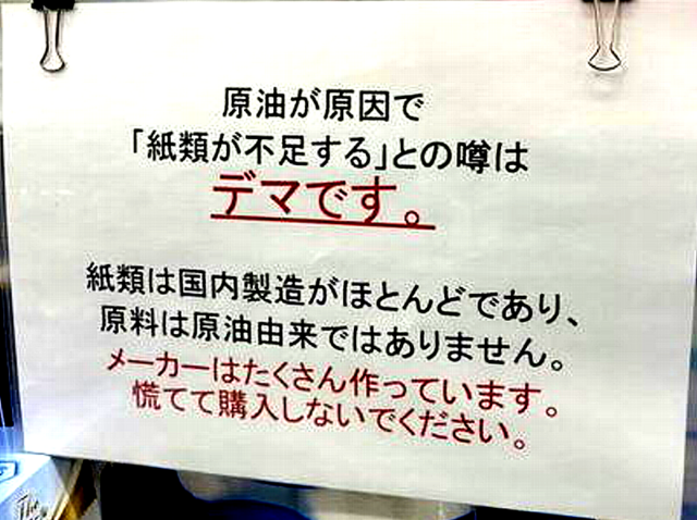 発端は誤解であったが、何百万人もの人が、一斉にトイレットペーパーを買いに走り、「紙製品が無くなる」ことが現実になった。