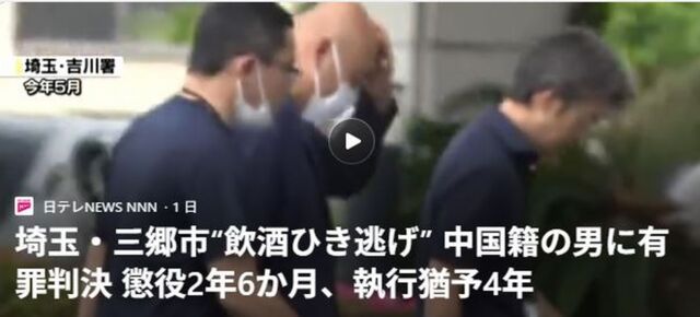 スレッドタイトル:飲酒ひき逃げで執行猶予の中国人