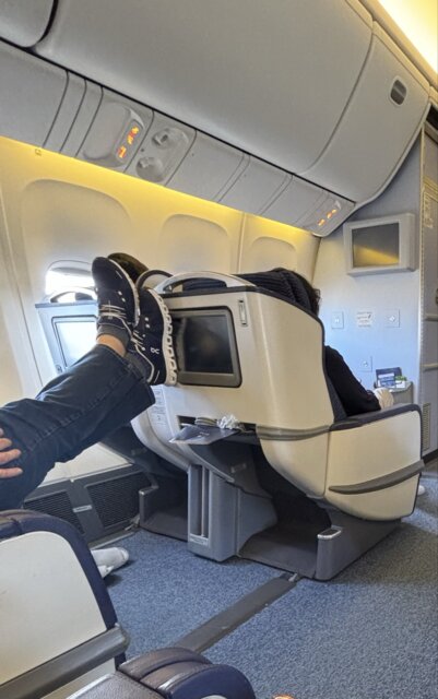 前の席の人の頭に足を乗せるのはマナー悪いと思いがちだけどそうではなく、飛行機の椅子が快適じゃないから。
