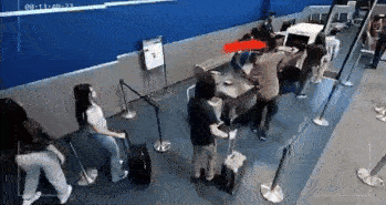 ゲート通った人や女の後ろの人も消えてるから途中のシーンがカットされているだけ