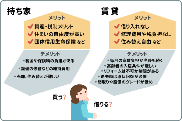 老後を賃貸で暮らすか持ち家にするかには、それぞれメリット・デメリットがあります。